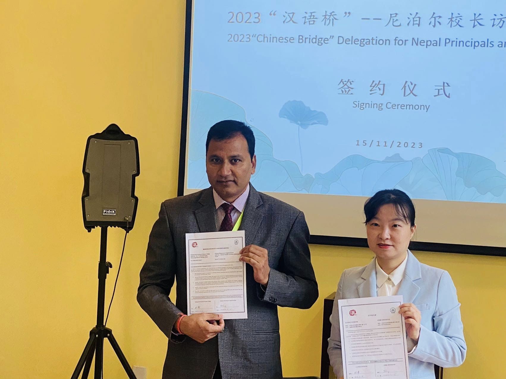 ‘सेन्टर फर ल्याङ्ग्वेज, इजुकेशन एण्ड कोअपरेशन’ को आयोजनामा भइरहेको कार्यक्रमका क्रममा नेपालको संस्कृति, शिक्षा, पठनशैली र चीनको संस्कृति, शिक्षा, पठनशैली सम्बन्धी ज्ञान आदान गर्न स्कुलले कलेजसँग सम्झौता गरेको हो ।