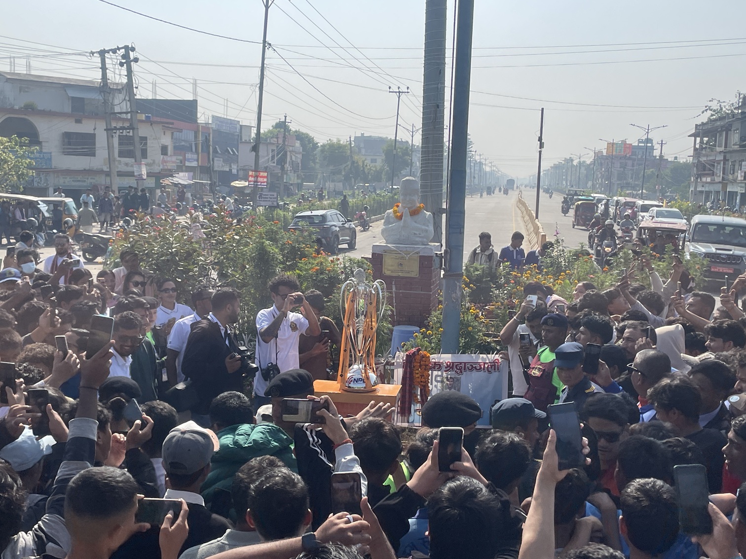 ट्रफी टुरको एक समारोहकाबीच नेपाल क्रिकेट संघ (क्यान) का अध्यक्ष चतुरबहादुर चन्द र टीकापुर नगरपालिकाका मेयर रामलाल डगौरा थारुले शुभारम्भ गरेका छन ।